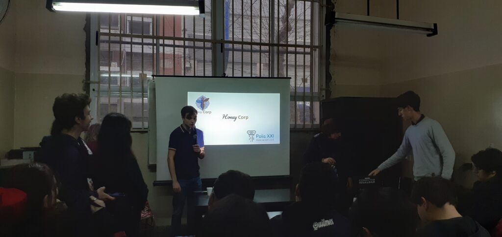 Somos integrantes del Proyecto Jóvenes XXI, de la Asociación Civil Polis XXI. Esta iniciativa llamada Honey Corp, cuyo eje de interés es la seguridad informática, está conformada por jóvenes pertenecientes a los últimos años del ciclo superior secundario de escuelas técnicas públicas.