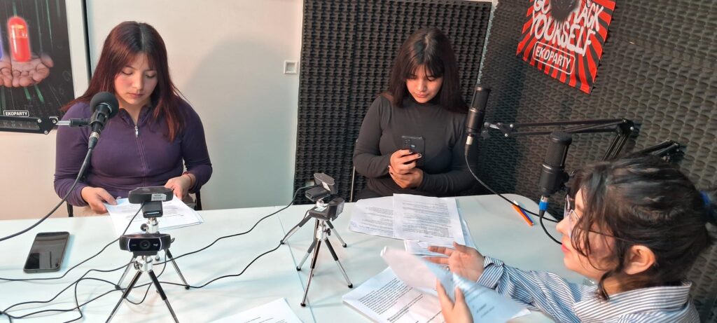 Con el objetivo de concientizar a jóvenes estamos produciendo programas de radio audiovisual, charlas, entrevistas y datos propios. El primer programa ya producido tiene como eje la cultura digital y hábitos saludables. El segundo programa trata sobre los ciberdelitos que afectan a la integridad moral (especialmente el grooming) y malware diseñado específicamente para atacar a los jóvenes. El tercer programa se hará en vivo en noviembre durante la Ekoparty, cuyo eje será presentar nuestras investigaciones.